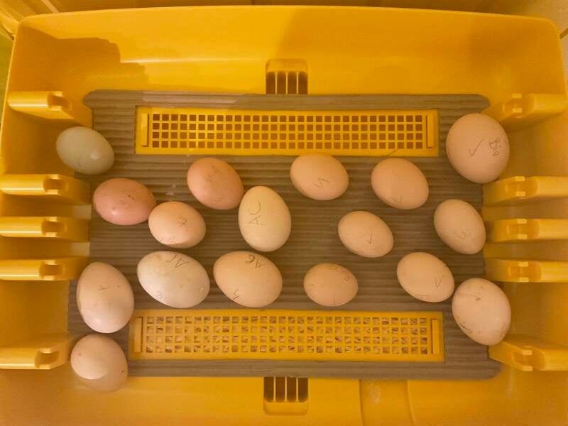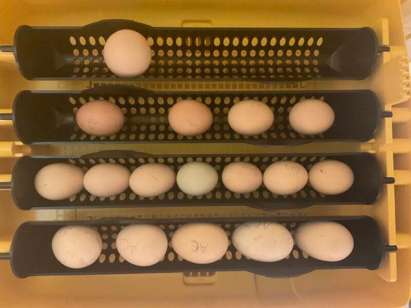 Wir wollten auf jeden Fall Ayam Cemani und Zwergseidenhuhn-Eier ausbrüten. Außerdem wollten wir ausprobieren, ob es stimmt, dass aus gekauften Supermarkt Bio-Eiern wirklich Küken ausschlüpfen.