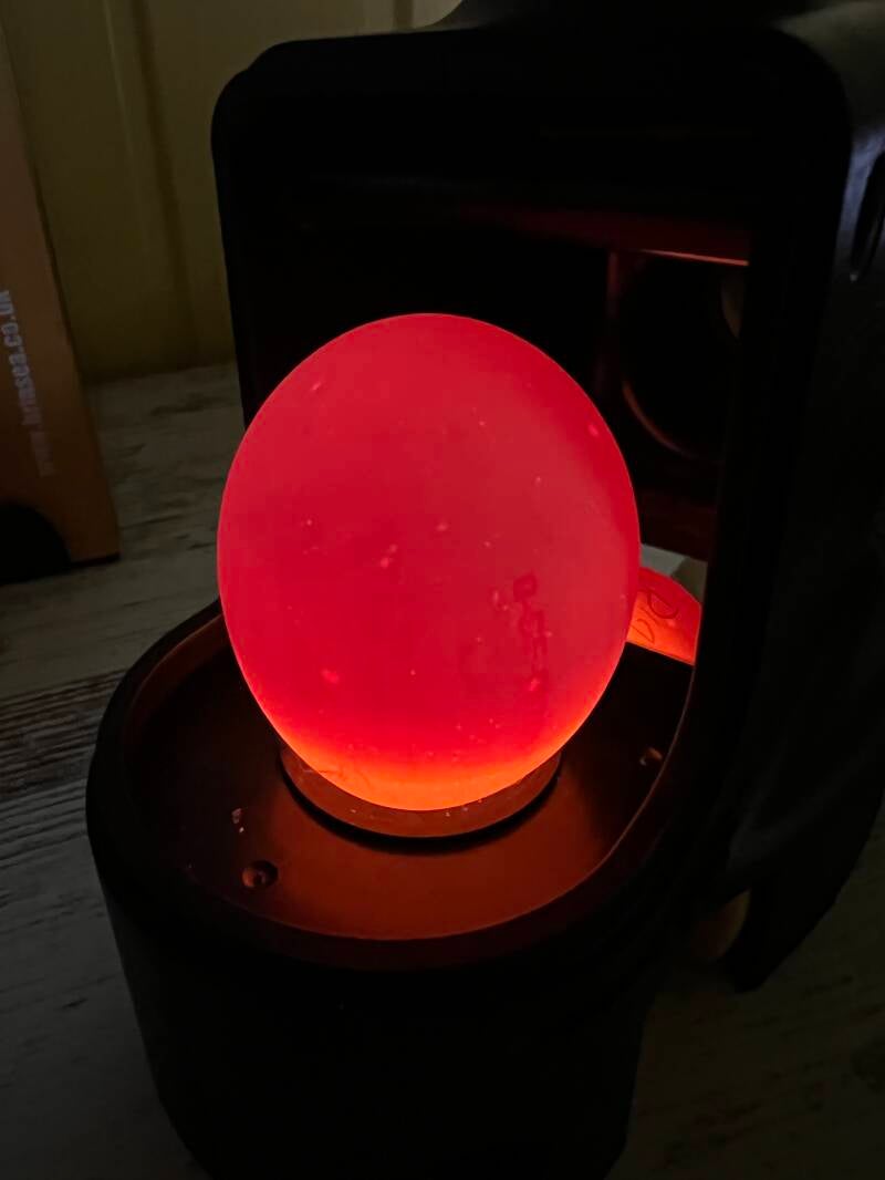 Ein Ei ist leider abgestorben und wurde auch aus dem Brüter entfernt.