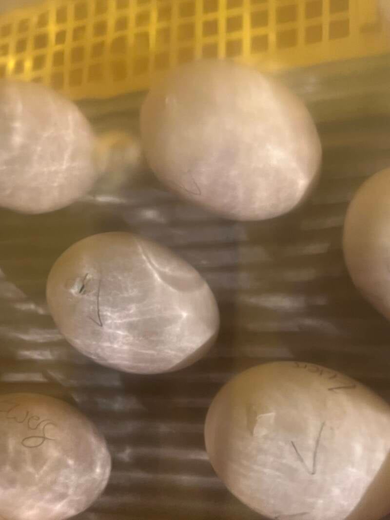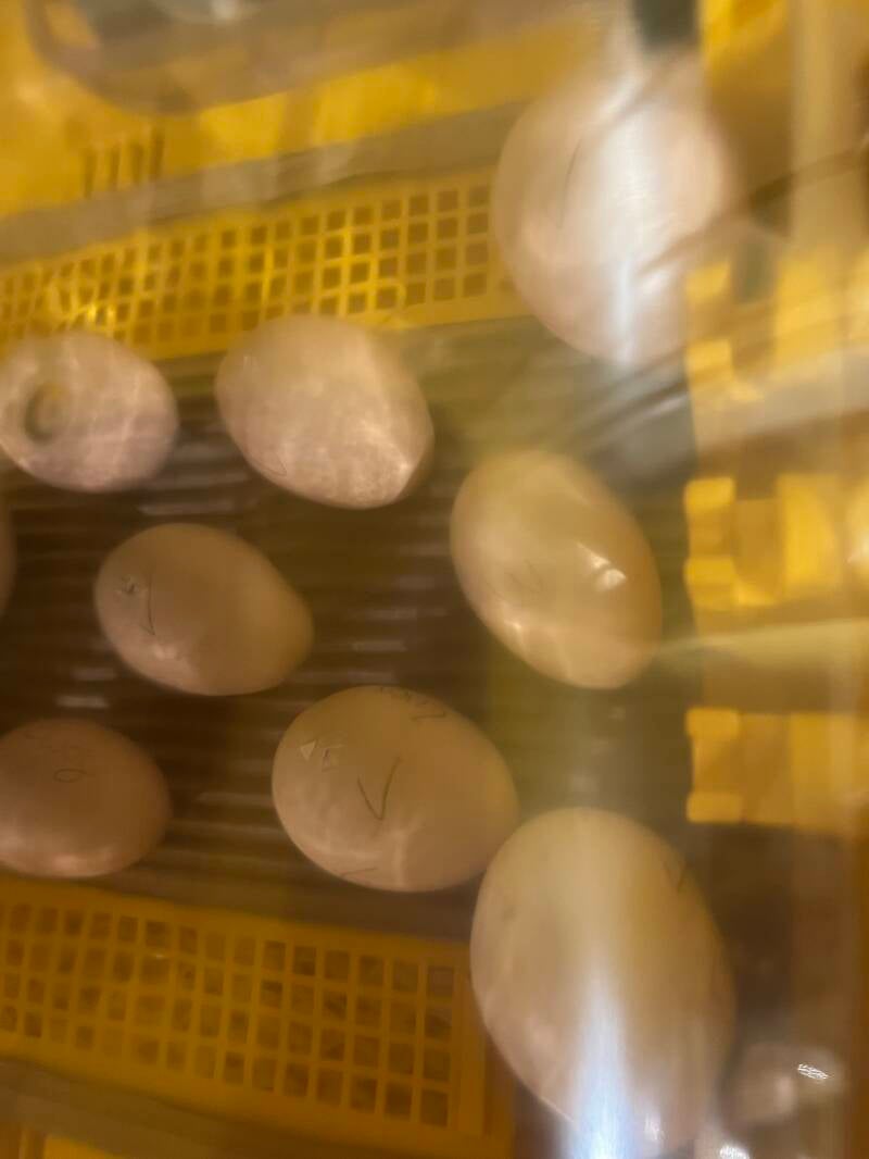 die beiden Eier die vielleicht befruchtet waren sahen noch genauso aus, und somit haben wir sie aus dem Brüter entfernt.