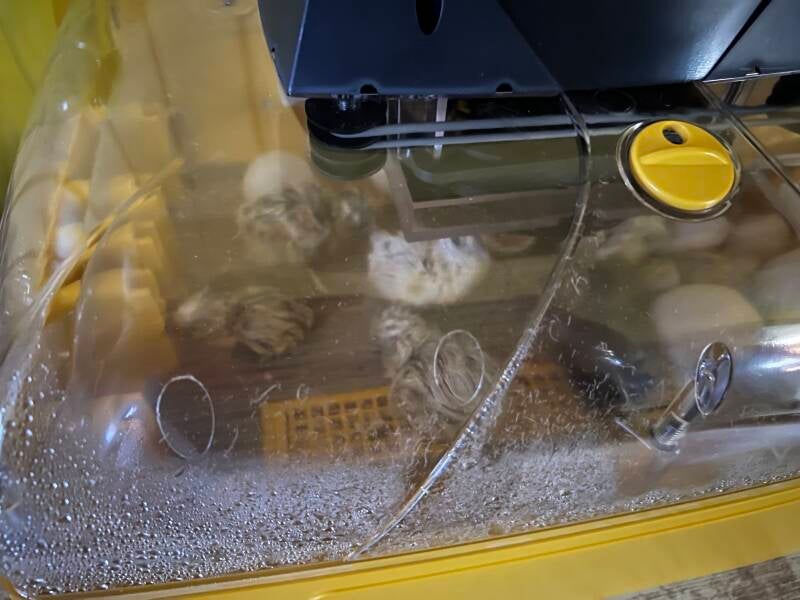 Sie waren noch ganz feucht und trockneten im Brüter erst mal noch vor sich hin!
