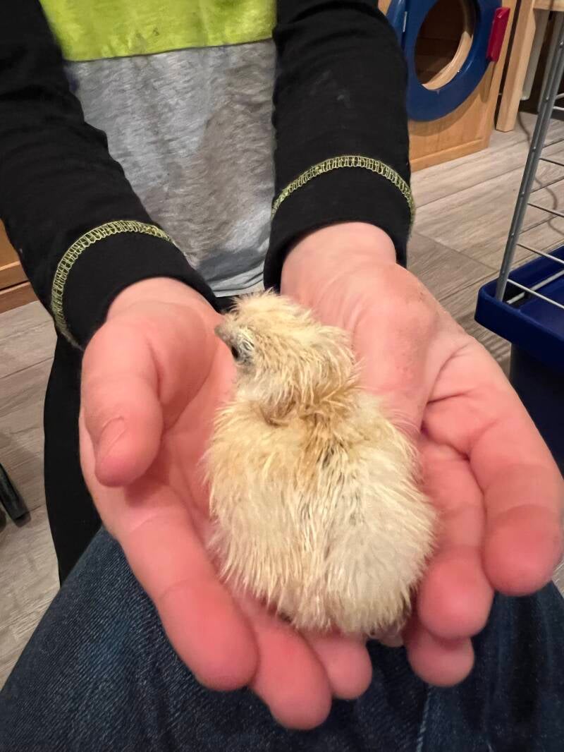 Bei einem Küken durften wir zuschauen, wie es schlüpfte.