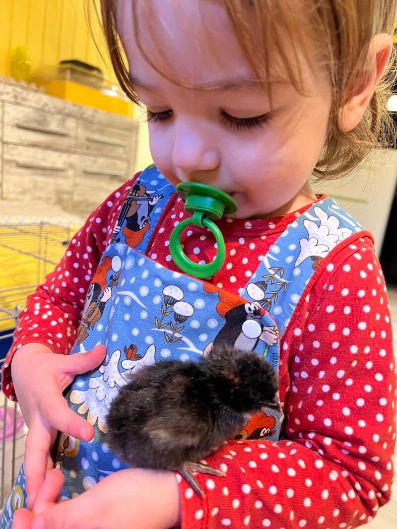 Seit einigen Jahren haben wir immer mal wieder Küken. Die Kinder sind fasziniert davon und wir finden es einfach schön, dass sie sehen können, wie sie aufwachsen und wie schnell sie sich verändern.