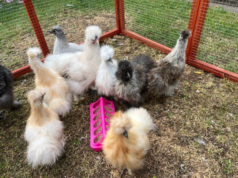 Außerdem werden die "Großen" von den Zwergseidenhühnern getrennt. So haben alle etwas mehr Platz.